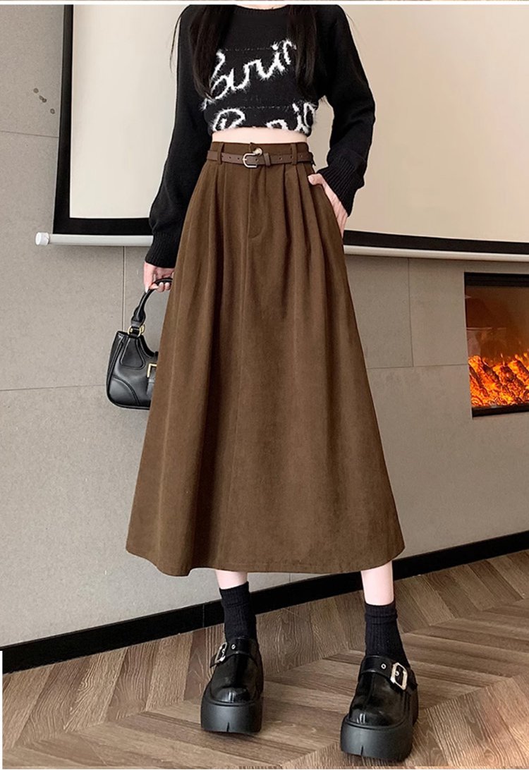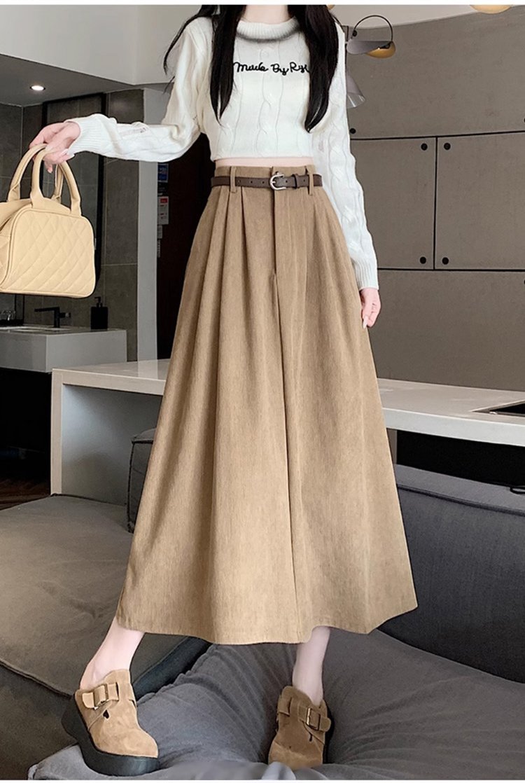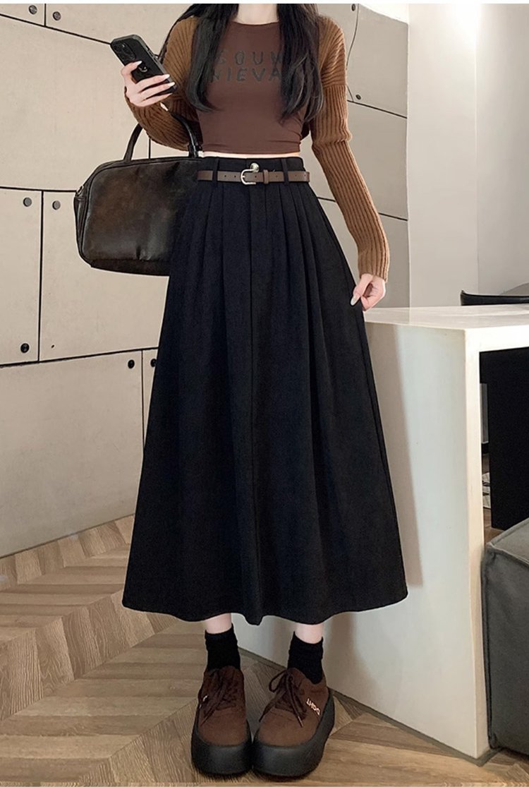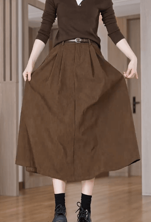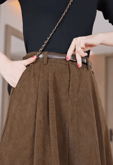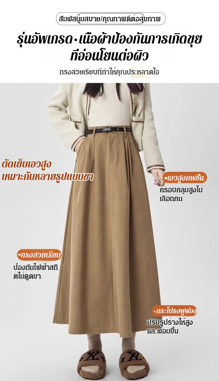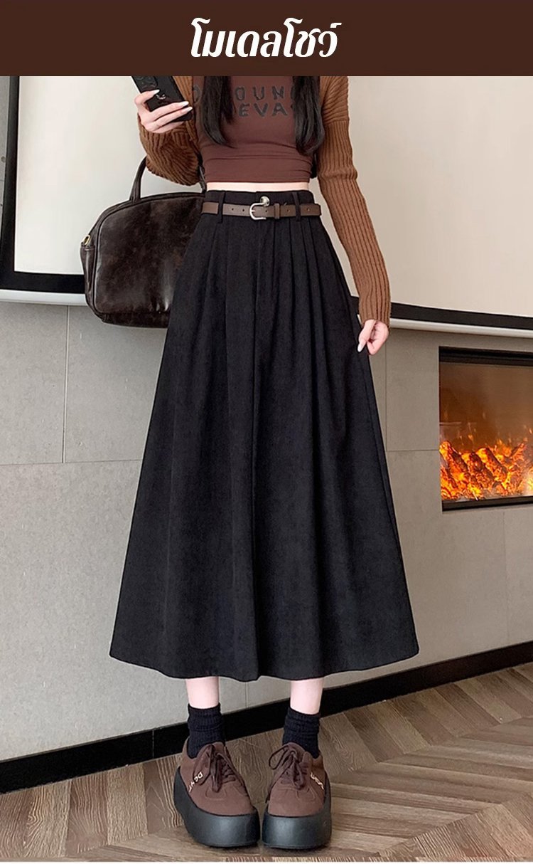 กระโปรงเอวสูงทรง A ดูผอมสไตล์ย้อนยุค