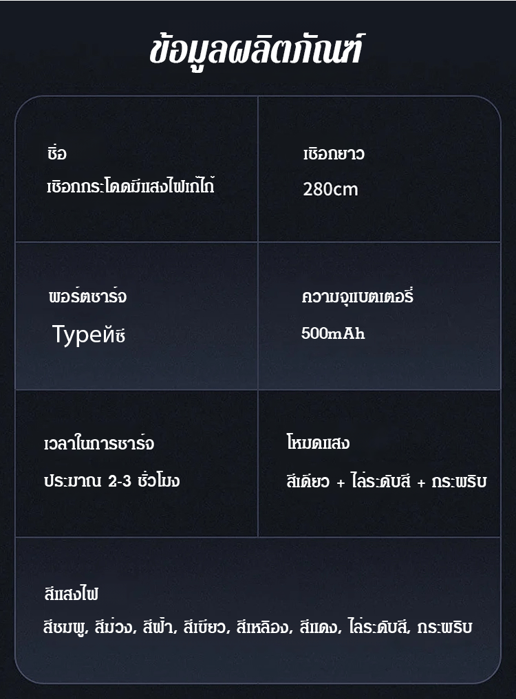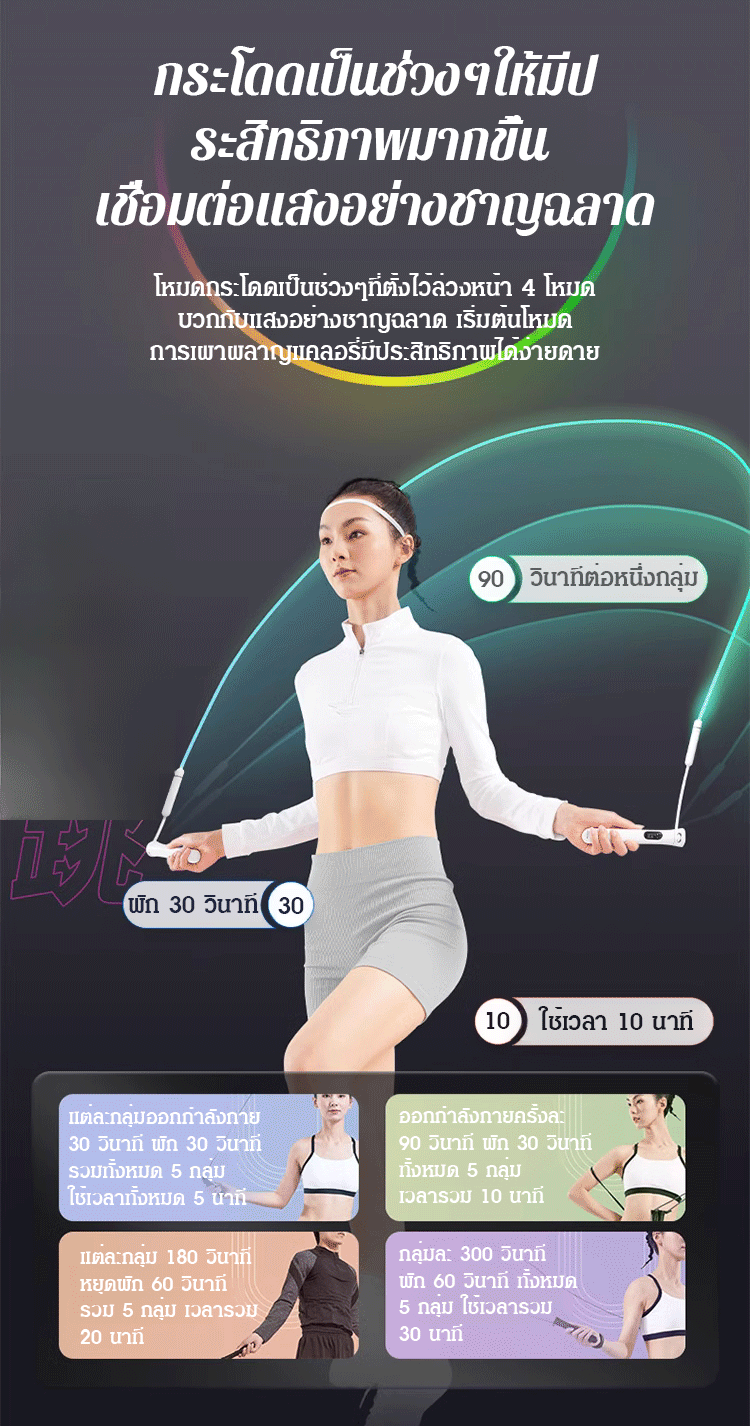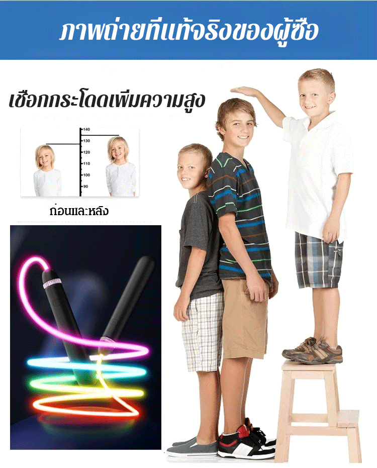 เชือกกระโดดเพิ่มความสูง ชาร์จไฟได้ แสงไฟหลากสี